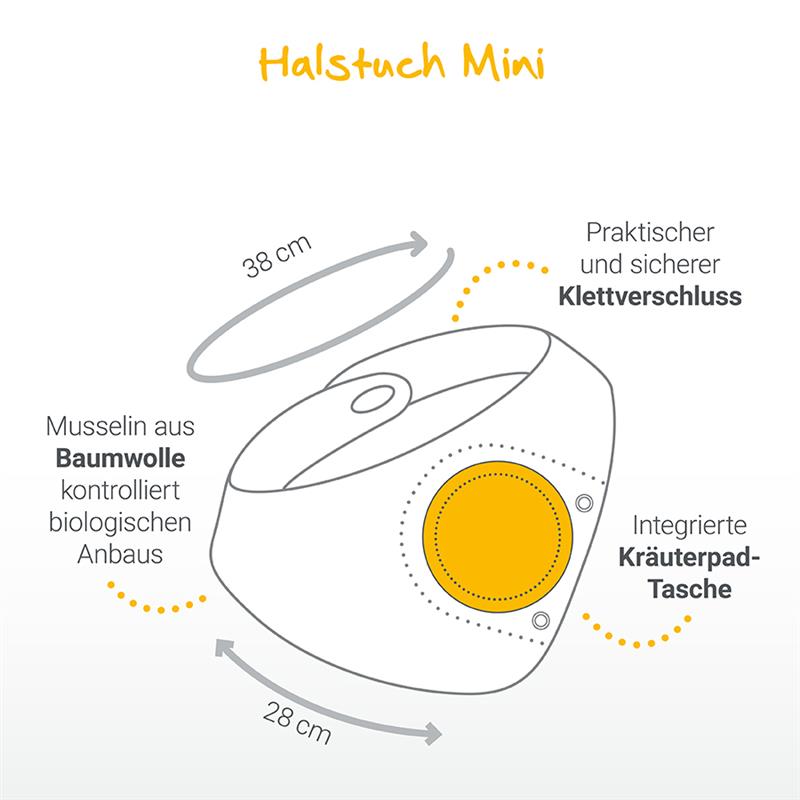 - Muslin scarf mini (0-4 years) with integrated pocket for the herbal pads + 4 herbal pad containers (5 herbal pads each), suitable from birth