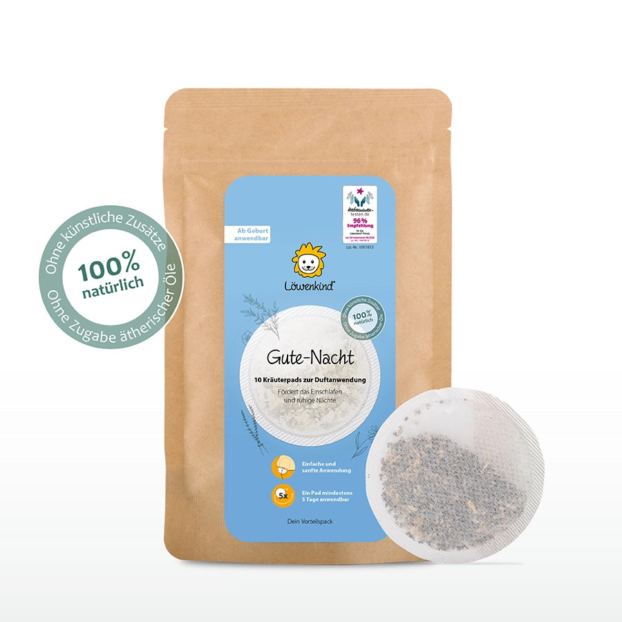 Ja, das Gute-Nacht-Pad enthält nur natürliche, unbedenkliche Kräuter, die speziell zur Unterstützung eines entspannten Schlafs ausgewählt wurden. Löwenkind hat es sich zur Aufgabe gemacht, nebenwirkungsarme und nützliche Produkte für Babys und Kinder zu entwickeln. Bei Unverträglichkeiten oder Allergien solltest Du jedoch vor der Anwendung einen Kinderarzt konsultieren.