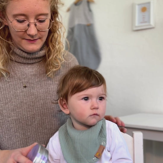 Das Kräuterpad wird ins Löwenkind Halstuch gesteckt. Dank der Körperwärme wird der Duft der Kräuter verstärkt.