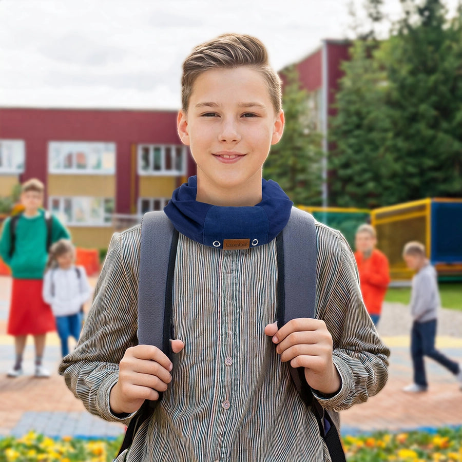 - Elastischer Loop-Schal mit integrierter Padtasche, angenehm zu tragen und speziell für Kinder ab 6 Jahren entwickelt