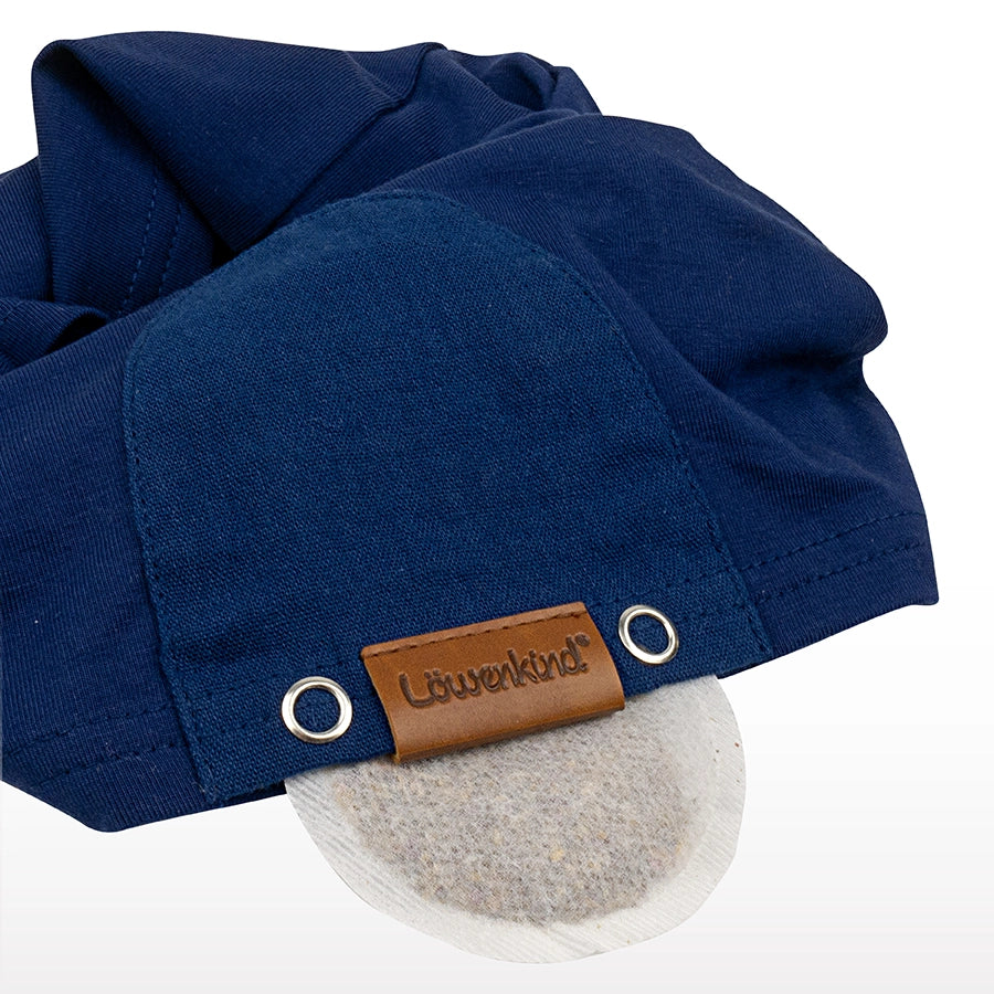 Das Kräuterpad wird ins Löwenkind Halstuch gesteckt. Dank der Körperwärme wird der Duft der Kräuter verstärkt.